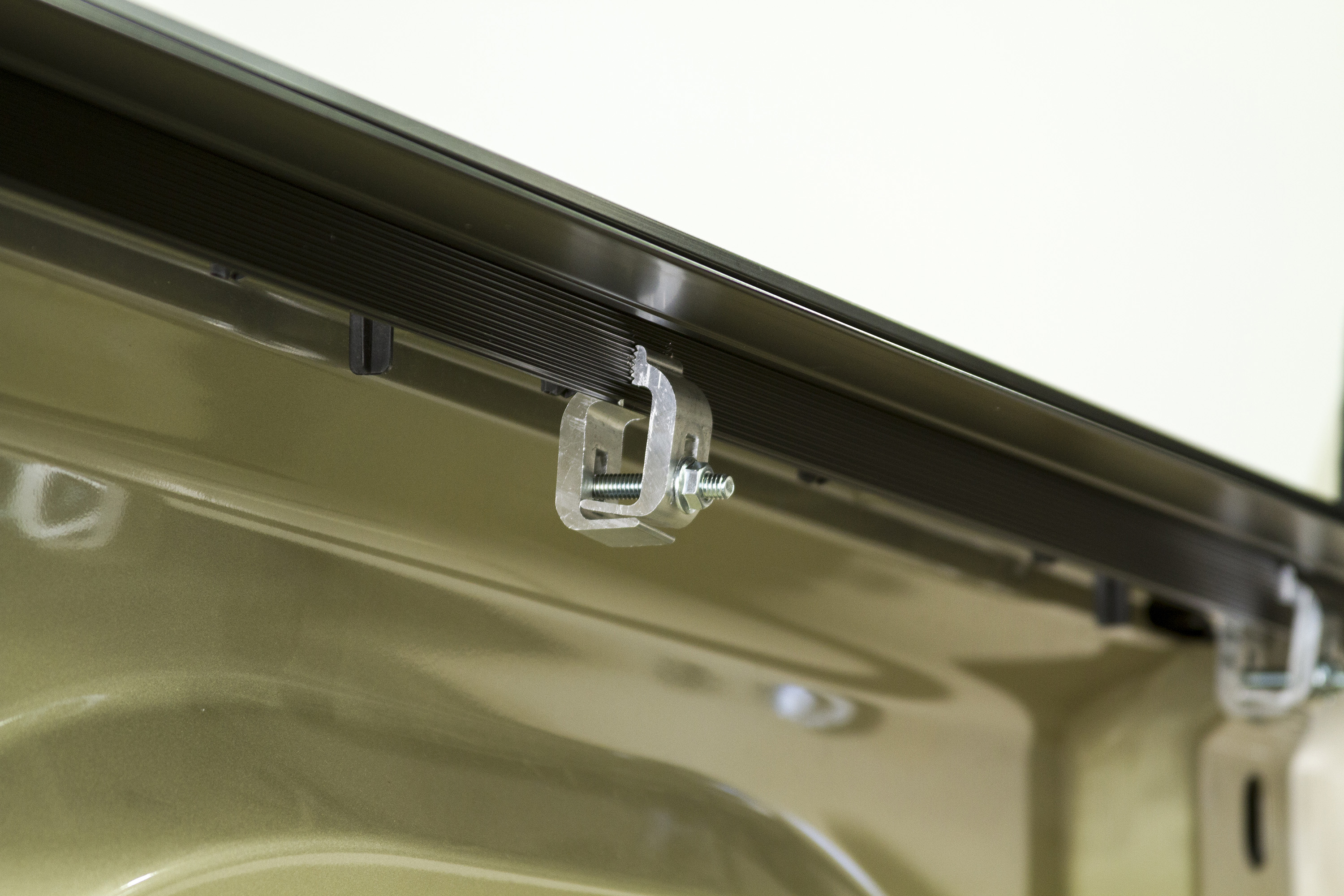 ✔ Works with most bed rails, bed caps, tailgate protectors, under the rail bed liners and tie downs